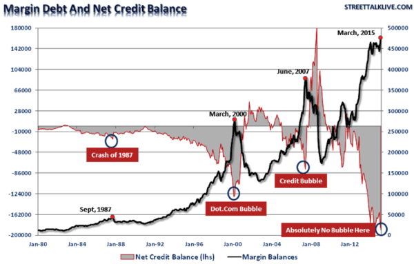 "Along with the markets currently being more overbought now than at any other point in history, they are also more leveraged as well. Late last week the NYSE released its latest margin debt figures for March. Despite a rather sluggish market, investors piled on margin debt pushing levels to all-time highs as shown below. It is worth noting that when net credit balances have plunged very negative levels, it has been coincident with major mean reverting events in the market. "While this time could certainly be different," the reality is that leverage of this magnitude is "gasoline waiting on a match." When an event eventually occurs, that creates a rush to sell in the markets, the decline in prices will reach a point that triggers an initial round of margin calls. Since margin debt is a function of the value of the underlying "collateral," the forced sale of assets will reduce the value of the collateral further triggering further margin calls. Those margin calls will trigger more selling forcing more margin calls, so forth and so on. Notice in the chart above that margin debt reductions begins innocently enough before accelerating sharply to the downside." (Lance Roberts on April 29, 2015) ### Stephan Bogner Disclaimer: The above does not represent a recommendation to buy, sell or even hold any market, stock or the like. Kindly act on your own responsibility and due diligence. Please read the full disclaimer onwww.rockstone-research.com. |