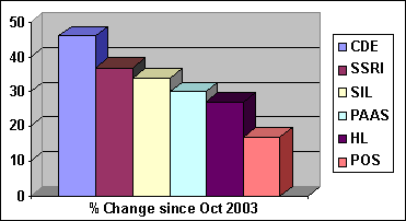 relative to the King of Money. David Chuhran Disclaimer: The author owns SSRI and several other precious metal stocks and mutual funds not specifically mentioned here. This is not meant as investing advice and is only meant to show interrelationships within the precious metal sector. Copyright ©2004 David Chuhran. All Rights Reserved |