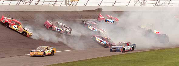 Making the Old Money NewDavid Chuhran I feel like I'm watching a NASCAR race at the Talladega or Daytona Super Speedways. The Federal Reserve car is leading the race because they refused to use restrictor plates like the rest of the field. Nobody else even bothers to complain anymore when the Fed's engine output is unrestricted allowing them an unfair power and speed advantage. Everyone knows the Fed team makes up their own rules as they go. They're always leading and never need a pit-stop. Their tires never wear; and it looks as if they ride atop a layer of thin air. You see, nothing they do is firmly planted on the ground and it's from this "thin air" that they also create the fuel necessary to run high speed circles---forever. At least, that's what they think. You may be thinking, "That would never happen. It wouldn't be fair!" That's the problem, it is happening, but not on the NASCAR circuit. Of course the Fed has no car, but that's how they run our monetary system. They make up their own rules and create money out of "thin air," but just as in the analogy above, few drivers complete a full career without suffering a rollover. Our Fed car is no different in this respect, and will eventually rollover. Just like the actual restrictor plate races, if one car crashes, it usually causes several other cars to crash along with it. If the lead car rolls, it could take out the whole field. What can we do folks? This system ain't workin'!