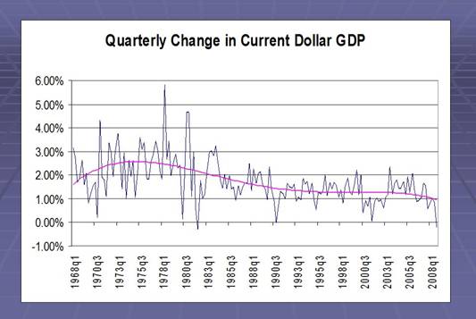 Is This The End Of Wealth Creation?Ronald R Cooke The Roman Empire The rise and fall of the Roman Empire is a classic example of Return On Investment (ROI). Rome essentially funded conquest through pillage, bringing rich treasures of gold and silver back to Rome. During the early years of the Empire, the ROI on conquest was very good and Rome prospered. It had plenty of coin to fund its Legions. As the years went by, however, it became more difficult to find lands worth conquering and the travel costs to send a Legion to remote lands increased. The ROI of conquest began to falter, and Roman Emperors finally concluded additional conquests were not worth the cost. Years of wealth creation came to an end. The Roman Empire shifted its attention to wealth preservation. Whenever a nation slips from wealth creation to wealth preservation, it becomes increasingly difficult to sustain the prior level of wealth. As the cost of maintaining the Legions went up, the ROI on having them declined. In order to pay the cost of preservation, Rome debased its currency multiple times. Debasement is a way to pay today's bills with tomorrows worthless coins. That led to incredibly high rates of inflation. Payment in kind often substituted for worthless currency. This debasement continued until mercenary legions refused to take Roman coins, sacked Rome, and established their own government. (Reference 1) Sound Familiar? There is a lesson here. If economic circumstances yield a positive ROI on labor, capital and material, then a nation is able to create wealth. When a nation lapses into wealth preservation, the ROI on invested capital declines. It becomes very difficult to sustain transfer payments because the creation of wealth declines to a point where there is no more wealth to transfer. Wealth, in this sense, has little to do with how much money the rich can command. We are talking about the wealth of a nation's workers, and more specifically the wealth of its middle class. Rome's declining ability to maintain the wealth of its workers led to unsustainable welfare costs. The cohesive energy of Roman culture collapsed. This is precisely the situation in America and the European Union. The 20th century was marked by multiple opportunities to create great wealth - radio, television, movies, telephone, automotive transportation, coal, oil, natural gas, electricity, railroads, airplanes, bio-sciences, communications, electronics, semiconductors, computers, PCs, the Internet and software. Economic circumstances created multiple opportunities to create wealth for the ordinary person from the mid 19th through the end of the 20th century. The collapse of the technology bubble from 2000-2003 was especially significant. Beginning in the late 1960s, computers, then PCs, then networking, and finally the Internet - along with all the software to make them work - offered the last significant wealth creation opportunities of the 20th century. When the technology bubble burst, the era of wealth creation ended. Subsequent development of cell phones, computer games, and other electronic devices are merely an extension of the technology era. Important as they are, they did little to increase the GDP of most nations. Every OECD nation will be focused on wealth preservation. Aside from nano-technology and energy, it would appear the 21st century will be characterized by an unsuccessful attempt to sustain prior wealth. There are few significant opportunities to generate new wealth on a scale of the innovations that underpinned wealth creation over the last 160 years. We will build new cars, interesting vehicles with new energy components, but we will not create the auto industry. We can now fly anywhere in the world, but our ability to manufacture economically viable airliners has peaked. The traditional media industry is now in contraction. We have already discovered, and consumed, most of the cheap oil. And so on. The Deterioration Of GDP The American economy has an embedded structural problem. Our economic focus has shifted to the preservation of wealth. This is not a prediction of the future. It is already happening. The following chart shows the annual change in Current Dollar Gross Domestic Product (GDP) from 1968 - 2008. Note that current dollar GDP seldom exceeds 2% after Q2 of 1984. For the last 20 years, the average has been just over 1.2%. The "Internet Boom" of the 1990's actually did little to increase current dollar GDP. And despite a few quarters of spectacular growth as we claw our way out of this recession (no sure thing), it would appear average annual current dollar GDP growth will continue to deteriorate. ![]() This is why I am furious at the intellectually challenged thinking that has gone into the proposed "stimulus" bill. It does much to transfer wealth. It does a woefully inadequate job of providing the opportunity to create substantial new wealth. Our government is currently trying to artificially elevate American Real Estate values and sustain economic activity by spending several trillion $s of taxpayer money on "bail-outs" and "stimulus" packages. Although money flow will surge for a time, these efforts will ultimately fail because they do not address the fundamental underlying problem - we have slipped into preservation mode. If we want these programs to be successful, they have to either create wealth, or facilitate the creation of wealth. (Reference 2) Looking Ahead For the purposes of this article, there were four other reasons for the decline of the Roman Empire: