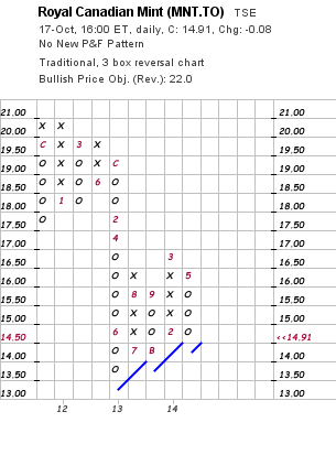Point & Figure charts incorporating lag have allowed us to have our upside potential painted over for now.