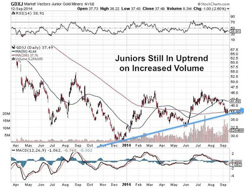 This past week I have had to cut back on my publishing due to my travels to the Precious Metals Summit where I had back to back meetings with some of the top fund managers, investors and over 30 of the highest quality junior miners. I was able to get updates in person of current and past holdings as well as potential new first class opportunities with huge catalysts ahead. The Post Labor Day rally in precious metals I expected has turned into the Post Labor Day sell-off for precious metals and many mining stocks. Many investors came back from Labor Day and sold their gold (NYSEARCA:GLD) and silver (NYSEARCA:SLV) in favor of the U.S. dollar (NYSEARCA:UUP). This could be the worst possible trade right now. This could be the shakeout before the breakout in the precious metals. Generally this is a seasonally strong time for gold and silver. We may bounce off new lows below $1200. Despite gold testing new lows, the junior miners (NYSEARCA:GDXJ) are still in an uptrend since December of 2013. Is the outperformance of the junior miners indicating that gold may bottom here around $1200? (Click on image to enlarge) There is no doubt about it we are in the midst of a major low in gold and silver after one of the longest bear markets since Bre X. Gold and silver are testing lows at $1200 gold and $18.50 silver. It has been extremely painful bear market with many of these junior miners which were trading at $10 are now worth $.10. However, the major funds and miners were well represented in Denver meeting with the juniors and have not given up. Merger and acquisitions are increasing with many recent deals at attractive valuations. Remember the producers are under pressure as they have to cut back on high cost production and are looking for lower cash cost resources in the junior mining sector. Recent valuations of M&A transactions gives us a benchmark in analyzing future investment opportunities. Remember Cayden was very early stage and did not have a resource. They just had exceptional drill results. That is why I do not ignore early stage explorers trading at less than 1/10th of recent M&A valuations. I will be carefully digesting some of those ideas I gathered in Denver both on the markets and the miners and share the findings with my premium subscribers over the next few days and weeks. The time to buy and research the highest quality assets are during these sell-offs when the gold and silver charts get aborted and as support is violated. A break into new lows may set off a margin call where the price could move down rapidly. At that time some of these companies should be bought and not sold into the panic. Capitulation and when the sentiment is extremely negative is when the best buys can be found. Look for major capital to come into these situations after the weak hands are shaken out. Investors' expectations about the US recovery may be overblown. The US dollar is strong now because Europe is very weak now as they are in a major conflict with Russia over Ukraine. The US Dollar is being bought as a purported safe haven temporarily as investors expect the ending of QE. Capital should eventually transfer from overbought equity and bond markets into commodities and precious metals. This has not been seen yet and I may be a little early, but history is on my side that hyper-inflations follow deflations. Better early than seconds too late. Most of the investors and companies at this conference were the high quality survivors during the bear market that are still able to raise capital despite gold correcting more than 30% over the past couple of years. These winners tend to be the biggest winners in the coming bull market. These discounted valuations in the juniors have not been seen in the history of the junior markets. The smart funds, major miners and high net worth individuals attended as the strategy may be finding the best stories that will not only survive but come out stronger after the final low in precious metals is formed. The precious metals are in the longest bear market since Bre X. The US dollar and S&P500 are irrationally overbought. Gold and silver may once again test the 3 year lows at $1200 gold and may break that support causing a panic sell-off which ends in capitulation. A flush out could be coming to mark the extreme bottom and turning point in the precious metals bear market. This is the best time to have a roster of high quality juniors with strong treasuries, excellent assets, management with track records and clean share structures. Don't panic as this is when some of the smart contrarian money will buy these real assets for even more pennies on the dollar then what they are trading at now. Look at 2009 after the credit crisis when so many people walked away from their homes only to try to buy back in at much higher levels. Don't get sucked into the US Equity and Dollar euphoria as investors forget about the risks of all the printing of this money. Don't sell out your junior miners for pennies on the dollar at possibly the worst time. Remember this is the longest bear market in the juniors since the Post Bre X 1997-2001 debacle. The sentiment may be at the point of extreme capitulation causing a panic sell-off. That is why the smart money may be ready to pounce on capitulation into the highest quality juniors. The extreme negativity when there are only sellers usually marks the bear market bottom. ### Jeb Handwerger Disclosure: I do not own any stocks mentioned in article. Read more at http://goldstocktrades.com/blog Gold Stock Trades Editor Jeb Handwerger is a highly sought-after stock analyst syndicated internationally and known throughout the financial industry for his accurate and timely analysis of the equities markets, particularly the precious metals sector. Subscribe to his FREE Newsletter right now. Read full disclaimer by clicking here... ©2014 Copyright Jeb Handwerger - All Rights Reserved |