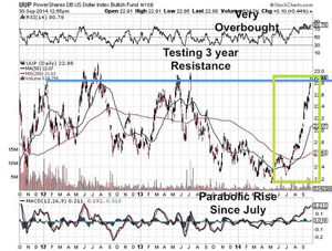 Over the past few months, I have seen an influx of capital and high net worth investors who are getting interested in the junior mining resource area. Now may be the worst time to panic out of the precious metals and junior mining sector into the overbought US dollar. Smart capital may be carefully looking at ways to diversify away from the euro and yen which has collapsed hitting multi-year lows. Inflation may pick up rapidly in Europe and Japan. The European Central Bank is printing euros (NYSEARCA:FXE) like crazy causing a collapse in the currency and its worst quarter in many years. This is a manipulative attempt to stimulate a weak economy and boost exports from the region. (Click on images to enlarge) The flight of capital from Europe and Japan (NYSEARCA:FXY) has looked for temporary liquidity in the US dollar (NYSEARCA:UUP) which is hitting three year highs as investors expect the Fed will raise interest rates by 2015. But I wouldn't count on that so quickly. Investors are also buying the S&P500 (NYSEARCA:SPY) large caps sitting on record cash positions. The US may be the most dangerous overbought market right now that could correct from those nosebleed levels delaying interest rate increase. The US dollar has soared as a liquid alternative. For how long is the main question. Can the S&P500 continue to rally alongside the dollar? The yen and euro is collapsing. Could the US dollar be the next currency to fall or could it be the US equity markets which have gone up for three years now with no meaningful correction? A strong US dollar could put pressure on the large US multinationals and S&P500 as US exports become more expensive. US deficits continue to soar to record levels and they must be paid with cheaper dollars. Eventually, the large US dollar position should rotate into the commodities and natural resources as deflations set the stage for hyper-inflations. What one must do during these periods is prepare for inflation to pick up by buying precious metals and junior miners. Deflationary periods do not last long. The long term trend favors inflation. Three to four years is already an extended period of time for a correction by historical standards. Deflations breed the best buying opportunities as one can protect oneself ahead of the inflationary storm that may be directly ahead. Gold (NYSEARCA:GLD) and silver (NYSEARCA:SLV) prices have been declining since 2011 but may soon bottom as the US dollar begins to test multi-year highs. The US dollar is very overbought as investors fear that the US will raise interest rates while other countries continue to print money like the ECB, Japan and China. This rally in the US dollar should not last much longer as it may be a dead cat bounce before the next downturn. This may actually be a great time to transfer cash into real assets such as the junior miners (NYSEARCA:GDXJ) trading near multi-year lows. The US deficit is continuing to increase especially as new wars are announced in Europe and the Middle East. The Fed will continue to support inflationary policies and prevent deflations at all costs. Rising deficits and war are usually quite bullish for gold and bearish for the dollar. Silver is already in new four year lows trading below $18. Gold has not yet violated the $1200 mark but may soon bounce off that level. The Junior Gold Mining ETF is continuing to hold its 2014 lows. Meanwhile, the US dollar is strong at new six year highs despite billions of dollars of bailout and quantitative easing. The Fed is running the risk of deflation and may actually be forced into more easing to boost inflation. The U.S. must pay back its record debts with cheaper dollars. Right now, the bottles of champagne are popping in the US as real estate and equity markets continue to hit new highs. However, the piper must be paid and it is harder to pay down debts with a strong dollar. Don't be surprised to see the Fed eventually make a reverse move to devalue the dollar to pay down debts. Expect more bubbles to explode not just in 3-D printing, but in social media stocks and get rich quick real estate scams. There is a huge cash position waiting on the sidelines to buy real money such as gold and silver especially from the Europeans right now dealing with a currency on verge of collapse and China, which just announced a new Shanghai Gold Exchange. Major institutions are sitting on large amounts of US dollars/bonds and must transfer that into the form of real money in the form of gold, silver and ounces in the ground controlled by the junior miners. Look for huge volume and accumulation in gold and silver over the next few weeks and in some high quality junior mining stocks. Negative capitulation followed by strong accumulation could be the indicator that the smart money expects gold and silver to bottom. The question for many is when this will occur. It should be soon as this correction in the junior miners has been one of the worst and longest in decades providing possibly a once in a generation buying opportunity. ### Jeb Handwerger Gold Stock Trades Editor Jeb Handwerger is a highly sought-after stock analyst syndicated internationally and known throughout the financial industry for his accurate and timely analysis of the equities markets, particularly the precious metals sector. Subscribe to his FREE Newsletter right now. Read full disclaimer by clicking here... ©2014 Copyright Jeb Handwerger - All Rights Reserved |