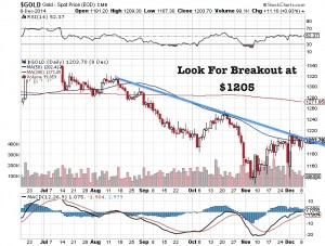 US Dollar and S&P 500 Rally Fizzling Out? Gold Breaks Five Month DowntrendJeb Handwerger In a recent article I wrote, “Gold and silver could gap higher by the end of 2014 and the top notch juniors could skyrocket.” I expected a breakout at $1205. It appears gold may be breaking that downtrend today.