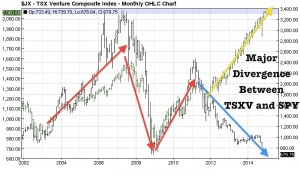 Notice the Canadian Venture is now testing 2008 lows while the S&P500 has broken way above pre credit crisis 2007 highs. Since 2011, we have seen a decoupling between the S&P500 and the TSX Venture. For the past decade the two indices moved together. This changed in 2011 when the US began to slow down QE while the rest of the world accelerated it. This may have caused a historic decoupling not seen since the Dot Com Bubble in the late 90′s. If the Venture returned to previous 2007 levels and comparable ratios to the S&P500 then the TSX Venture could be trading at multiples of its current valuation. Learn from market history and don’t be a fool chasing the latest fads and promos. Do not believe this time is different and that this historic decoupling between the S&P500 and the TSX Venture will last forever. Remember that everything is cyclical. Markets revert back to the historic mean. This means that now may be the time to continue building positions in selecting high quality and experienced junior mining companies trading at historic lows. Be careful of buying US large caps at extremely high premiums right now or shorting junior miners or precious metals. It may be time to start taking profits in the large caps and accumulate high quality and well financed juniors. This is not a time to panic and sell your junior miners for pennies on the dollar. You could mistakenly sell your shares right before a major discovery. ### Jeb Handwerger Gold Stock Trades Editor Jeb Handwerger is a highly sought-after stock analyst syndicated internationally and known throughout the financial industry for his accurate and timely analysis of the equities markets, particularly the precious metals sector. Subscribe to his FREE Newsletter right now. Read full disclaimer by clicking here... ©2014 Copyright Jeb Handwerger - All Rights Reserved |