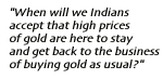 The sales tax has been made uniform all over India and hence the disadvantage of high taxes in Bombay is eliminated. Of course major changes in government policy are needed to transform Bombay into a major international center for gold trading which will not happen in the near future. The requirement to be a major gold trading center necessitates the trading of gold using derivatives, which invariably leads to speculation. One of the principal outcomes of derivatives trading is the transfer of wealth from the many to the few (notwithstanding whatever false propaganda the authorities and those in power may spread about derivatives). Hence, one point of view is that the absence of derivatives trading and the presence of only physical trading in India is a blessing in disguise, a view with which I sympathize largely. The gold market has broken out to a new 6-year high of US$ 390 per oz., on the back of geopolitical worries about North Korea and war with Iraq. Gold touched Rs. 6000 per 10 grams last week, a new all-time high in India! Subsequent reaction has seen some easing in the price of gold, and the media and the "experts" are quite skeptical about the sustainability of these high prices. The logic is that the central banks have a lot of gold that they will dump onto the markets since these gold reserves are a "dead and non-productive asset" anyway. The mildest charitable description that I can think of for these so-called "experts" is ignorance and all its various synonyms. These so-called "experts" obviously do not remember that India was saved in 1990 from default by pledging 40 tonnes of this "dead and non-productive asset", and South Korea's currency stabilized when the government collected gold, a "dead and non-productive asset", from their citizens to back their currency in 1997. The media's track record on understanding and forecasts of financial markets is of course obvious, so the less said the better. New highs for gold prices lie in the future, notwithstanding whatever the media and the "experts" may say, assert or tout! Generally, the figure floating 'out there' is that India holds 11,000 tonnes of gold that I had also mentioned in my earlier article. Mr. Vijay Sarda, a Mumbai-based bullion dealer, said that India has been importing gold at least since 1933, and earlier also. These imports were sizable. Official imports were banned in 1962 after which smuggling took over. Then imports were again liberalized in 1992. Now consider a peak net import rate of say 600 tonnes per annum, and 11,000 tonnes is about 19 years of imports. If you consider an average rate of say 300 tonnes per annum, 11,000 tonnes is about 37 years of imports only! If you consider an average of 300 tonnes of net imports, for 70 years (from 1933 to 2002) this amounts to about 21,000 tonnes! Consider the older gold holdings with the people and you could justify a figure anywhere between 20,000 and 40,000 tonnes! The gist is that it is very hard to estimate the gold holdings with the people of India but the holdings should definitely be far in excess of 11,000 tonnes! The Reserve Bank of India holds only 358 tonnes of gold as of year-end 2000. Lastly, the high prices of gold have prompted a huge amount of retail selling (misplaced enthusiasm no doubt) and a severe contraction in imports of gold. In fact gold imports have declined to negligible amounts in the last month and a half, which used to average between 35 and 50 tonnes per month. The market seems paralyzed by the high prices and practically speaking, all buying has stopped. As a consequence the local prices are lower than the import prices. If this situation persists or aggravates, we may see a net export situation out of India! Mr. Vijay Sarda observed that there is large quantum of dishoarding from the rural areas of India due to the present high prices of gold. Some of the probable reasons could be: The spread of television in the rural areas has spawned the consumerist behaviour amongst the rural folks. They now want to buy televisions, two-wheelers and other consumer goods rather than buy gold. This year has seen poor rains and the crops are bad this year. This may have led to financial stress prompting dishoarding of gold especially catalyzed by the new high prices in Indian Rupee terms. There has been a tendency in society the world over (I think) to try and make money at any cost, in any way, and with least effort. The earlier values of earning as a compensation for providing services or products to society is now replaced by the casino concept of earning money trade stocks, bonds and other paper assets/derivatives without worrying about the linkage to the real economy! So you can sell on highs and buy back when the price goes lower trade gold also! There will of course be other reasons that may have prompted our rural folks to sell which I may not be aware of. I would like to know if you think of any other reasons. So the only question I ask is when will we Indians accept that high prices of gold are here to stay and get back to the business of buying gold as usual? Pinank Mehta Pinank Mehta is a director with Métier Capital Management Pvt. Ltd. advising on wealth management. He can be contacted at metier@bol.net.in |