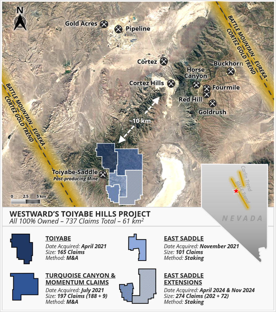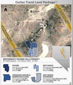 Looking for a Gold Needle in a Nevada Hay Stack: Westward GoldBob Moriarty If you were under the impression that in 2025 you were on a wild roller coaster ride driven by a drunken conductor, you ain’t seen nooting yet. On December 1st, 2025 Trump issued a full and complete pardon to the former President of Honduras after his conviction and sentencing in June 2024 to forty-five years in prison. I suppose Trump felt a kinship with him and believed he shouldn’t have received such a harsh sentence for only smuggling over 400 tonnes of cocaine into the US. Trump has now followed up 2025 with his very first war of the year began and ended on January 3rd with the kidnapping of Venezuelan President Maduro and his wife now charged with trafficking in cocaine and weapons charges identical to that of the former president of Honduras. Maduro wasn’t actually captured by Delta Force or the US military. Trump bribed everyone he could in the country. They sold Maduro and his wife to the US to be shipped to New York for another show trial. I can’t figure out if this is a rerun of an old Twilight Zone episode or something out of Bizarro World. After claiming for months that the entire issue with Venezuela was about drugs Trump got around to admitting it was all about stealing their natural resources. I have no doubt the citizens of the country will be just fine with that and will forget the eleven years of sanctions that destroyed the country financially. We will figure out this week if China’s position on restricting 70% of the world’s silver is their form of asymmetric warfare in response to the US attack. In any case, Trump hiding behind the skirts of the Monroe Doctrine smells given the fact that he claims neither China nor Russia have a similar right of self defense of their own borders and area of influence. I think Trump is driving the train of the American Empire down a 45% slope loaded with nitro and pedal to the metal on the throttle. Good luck with that. The last couple of weeks have also been a wild ride with the precious metals hitting record highs day after day. I suspect we are about to see who is really driving the price of silver lately. On January 1st China invoked new rules requiring permission to export silver. Given that 70% or so of silver ends up being processed in China, that easily could be a similar lever to that of the REE minerals. China may have just tossed a nuclear hand grenade in the world’s financial system through silver. Certainly, something is blowing up behind the curtains. On the 31st the Fed announced about $75 billion addition to the repo market and $106 billion to the reverse repo market. This is a lot bigger than 2008. Readers have found handy my mentioning the incredibly valuable Daily Sentiment Indicator for gold and silver. I highly suggest serious investors get in touch with Jake and work out a deal. It is the single most valuable sentiment measure I know. As of last Friday, the DSI for Gold was 55 and 67 for silver. Copper is showing at 66. None of those numbers indicate any sort of impending top but remember that is the ten-year bull market from 1971 until 1980 gold went from about $188 in late 1974 to $108 in September of 1976. Even in the most roaring bull market there are brutal corrections. I’ve been waiting months to write this story because I think the company has such incredible potential. With their Toiyabe Hills gold project in Nevada Westward Gold (WG-C) is looking for a needle in a hay stack. But it’s a gold needle in elephant country surrounded by a lot of incredibly rich hay stacks. At today’s price of gold, a one-gram gold needle is worth right at $139. I am very close to the Chairman of the company, Quinton Hennigh, and we have spent a lot of time talking about the project and the potential. Their Toiyabe Hills project is about 10 km from Cortez Hills. That’s the deposit part of the now Barrick Gold Cortez gold mine producing about one million ounces of gold a year or over $4 billion gross. Placer Dome was the operator of the JV in 1991 when drilling a condemnation hole they discovered the Pipeline deposit. They followed up their success by discovering the Cortez Hills property in 2002 while drilling another condemnation hole. For some strange reason it is a lot cheaper to drill under a leach pad before filling it up with ore. Placer followed that up in 2004 at Cortez Hills with the discovery of a major gold structural corridor testing at 45 g/t gold over 400 feet. Westward Gold is drilling a tiny six miles from Cortez Hills. (Click on image to enlarge) Westward Gold has a team consisting of some of the best and most experienced Nevada Carlin style geos in the world. They remain convinced they are on the edge of a major discovery. I’ve told Quinton they may be wasting time and money drilling conventional exploration holes and should go right to a series of condemnation holes. He ignores me a lot. On November 5th of 2025 Westward Gold announced drill results from hole CF25-04 showing 10.7 meters of 0.94 g/t at their Campfire project within the Toiyabe. Quinton pointed out to me that there have been Carlin style discoveries that began with similar assays. Now Westward has to home in on the structural system. On the 22nd of December the company announced results from another three holes from this year’s phase 1 drill program consisting of 7,163 meters of RC drilling. Hole CF25-07 revealed another interesting sniff of gold with 3.1 meters of 0.80 g/t gold. I think the company is a lot closer to making a 100 gram/meter intercept than the market is pricing. Quinton would term that a discovery hole. There are four holes still to be released. Hole 10 looks interesting. The company is sitting on $5 million in the war chest. They can drill 8-10 holes for that kind of money. The drill season is over for 2025 and won’t begin again until June. The company would be open to raising another $5 million in the form of some sort of JV