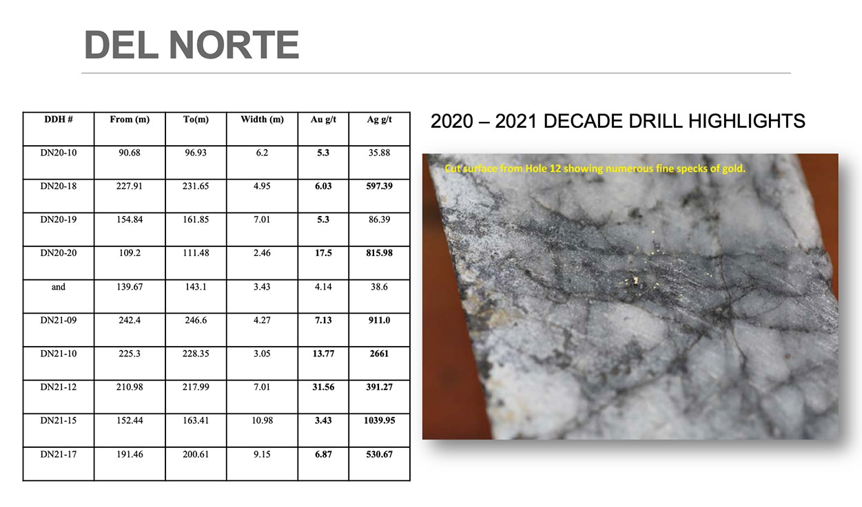 Decade Sits in the Heart of the (Silver) Golden TriangleBob Moriarty With both gold and silver hitting new all-time high prices a correction would be appropriate. However, the Daily Sentiment Indicator continues to indicate some distance to a major top. The DSI for gold is only 81 in spite of $4500 gold. Silver’s DSI hovers at 78 with the metal back to $80 per ounce. If the DSI is not part of your investment tool box you are missing access to the single most valuable indicator of tops and bottoms available to investors. If you call Jake and whine to him about how poor you are and mention 321gold, he will give you a break. It worked for me and should work for you. Few investors understand just how tiny the mining business is in terms of people. While hundreds of thousands, perhaps millions of people are employed in the industry, it’s a small world where everyone knows everyone else. There are half a dozen serious mining investors who are dealing with private placements and moving assets around like trading cards. Perhaps fifty or a hundred movers and shakers do the communicating about the industry and a few thousand serious geologists. Like every industry we have our scoundrels and liars who are constantly attempting to take either money or assets from others but we know who they are. They come and most often go but some show remarkable resilience in returning after we catch their hands in the cookie jar. As the bull market continues the interest of investors is moving down the food chain. Gold was the first mover as it blasted through all-time highs, then silver followed and it blew through all-time highs, then platinum joined the party followed by copper. The exact same thing happened with resource shares. The majors moved first followed by the mid-tier and lately the very high-quality junior lottery tickets. When the riffraff companies operated for years as life style operations join the party it will be time to head for the exits. I’ve been lucky enough to visit hundreds of projects on many continents and gotten to meet the finance guys and most of the movers and shakers. About fifteen years ago I was on a trip to northern BC and I crossed paths with Ed Kruchkowski. His name is a mouthful. I think he’s from Ireland. I was up there to visit another project owned by a company called Mountain Boy Resources. Glaciers retreating had exposed a lot of mineralization. Ed was working with them. Clearly he was the go-to guy if you wanted detailed knowledge about the area. Ed Kruchkowski is the president and a director of a tiny BC copper/silver/gold junior named Decade Resources (DEC-V). The company has a variety of projects in the heart of the Golden Triangle of BC. The area is one of the richest in the world in terms of mineral resources. In terms of past production and current resources, the Golden Triangle has 200 million ounces of gold with 569 million ounces of silver and 27 billion pounds of copper. If you want to bag an elephant, you need to be in elephant country. One of the problems holding the company back has been too much information. They have a wide variety of projects, too many for an average investor (or financial pundit) to fully comprehend. I’m going to try to talk about the top three projects. In November the company issued a total of 24,250,000 flow-through shares at $.04. That brought $9.7 million into the treasury along with some of the most experienced and savvy investors in the industry, namely Frank Giustra along with the highly respected Canadian geologist Rob McLeod. I asked Ed how they were going to spend the money because it’s hard to tell just what their direction is. One newly acquired project named the Bonaparte deposit which they optioned in late October is scheduled for drilling once the company gets the required drill permits. Don’t bother looking for information on the project on their website. The company has been remiss about keeping their website up to date and there is little information about Bonaparte there. Bonaparte does seem to have a RIRGS potential similar to that of Sitka and Snowline. A primary target is the Del Norte gold/silver property that they currently own 55% of with an option of picking up an additional 20% by taking the property to production. Del Norte has excellent potential and the company just put out a special news release to talk about the silver potential. This year brought the discovery of a new gold/silver zone with a grade of 6.78 g/t Au and 5,184 g/t Ag. (Click on image to enlarge) This past year has seen attention paid to the North Mitchell property with a press release put out a month ago showing exceptionally high grade grab samples of gold, silver, lead and zinc with grades as high as 9 g/t gold, 161 g/t Ag, 3.01% Pb (lead) and 5.6% Zn along with 73 g/t Au and 12.74 g/t Ag. I tried to get into the private placement but I was too late and couldn’t squeak through the door. I liked the story enough that I went out in the open market and bought shares. My timing was good; the shares have doubled since Christmas with 5.6 million shares trading just on Friday with a 33% gain on the day. The company is in excellent shape financially with the ability to seriously advance several projects this year, however, I would be seriously remiss if I failed to point out some potential failures. The presentation hasn’t been updated since April of 2025. The website fails to even discuss two of the most important projects, Bonaparte and North Mitchell. How about an upgrade guys? And the share structure looks like something out of an Australian or London mining scam peddling oil in a project located in EastBumFuck Nigeria. As of the last quarterly report ending October 31st, the company showed 118 million warrants. Since then, there have been a number of PPs and I can’t even figure out how many warrants are outstanding or what the real market cap of the company is. It’s one of those good news, bad news stories. Only God kn