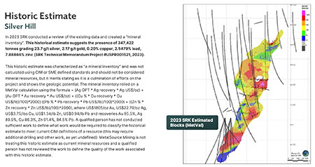 Metalsource Has the First Silver Mine Operated in the U.S.Bob Moriarty On January 7th, 1839 the first primary silver mine in the US opened. Named Silver Hill the mine is located in Davidson County in central North Carolina. The mine has a fascinating history and back story. Efforts have been made over the years to reopen the mine, however, low prices have prevented success. With gold near $4600 and silver at $85 an ounce the economics have changed. The Silver Hill mine is now controlled by a tiny Canadian junior named Metalsource Mining (MSM-C). In 2023 SRK was asked to provide a historic estimate for Silver Hill called a mineral inventory showing 347,422 tonnes worth about $513 in metal in the ground at today’s prices. (Click on image to enlarge) Metalsource Mining took out an option to purchase 100% of Silver Hill and a companion project called the Byrd-Pilot Mountain Project in September of 2025. The agreement called for cash of $250,000, exploration of $1 million and issuance of 15 million shares over time. The Byrd-Pilot property consists of about 1,032 acres and is located in central North Carolina in Randolph County. Work by the USGS back in the 1980s revealed the potential for a gold-copper porphyry system. No drilling has taken place since the 1980s. Management of MSM hit the ground running surfing higher with the increasing prices for gold and copper. At the time of the option agreement the shares were about $.20. The news rocketed the shares up to $.56 by mid-October before plunging to $.30 a month ago. As soon as the agreement was signed, management of MSM got in touch with Eric Sprott who signed up for a lead order of $1 million in a $4 million private placement. Eric Sprott happens to be a giant fan of silver. They also hired Tom Kleeberg formerly founder and executive for the Haile Gold Mine. Tom actually had direct operational experience at Silver Hill. MSM penned an agreement with Boart Longyear to begin a 2,000-meter core drill program at Silver Hill and Byrd-Pilot in early December. The drill plan is to combine validation drilling of historic mineralization at Byrd-Pilot along with targeting resource expansion at Silver Hill. At the same time Durango Geophysics is conducting a Magnetotelluric (MT) survey on both projects. Metalsource did a further private placement with Eric Sprott in late December for an additional $1 million at $.30 with a half warrant at $.40 good for two years. As of the time of the placement the company had completed hole four at Silver Hill. On the 2nd of January the company announced they were expanding the drill program at Silver Hill to a total of 1,400 meters of core drilling. It’s the quiet time of the year for the assay labs so look for assays to come back from ALS for the first four holes shortly. Metalsource intends to drill an additional four to six holes at Byrd-Pilot once the program is complete at Silver Hill. Investors in Metalsource woke up about the same moment investors woke up in silver metal. The shares have gone from $.40 at the time of the last placement to a high of $1.05 as I write. This is going to be an interesting story. Eric Sprott is probably the smartest mining whale in Canada. He gets in early and looks for 1000% returns and finds them a lot. Metalsource contacted me to advertise. I wasn’t quick enough or smart enough to jump on some shares but they pay me for advertising so I am biased. Do your own due diligence. It would be well worth your time to wander through the presentation. It is an excellent example of clarity in communication of a complex subject. Metalsource Mining Inc ### Bob Moriarty |