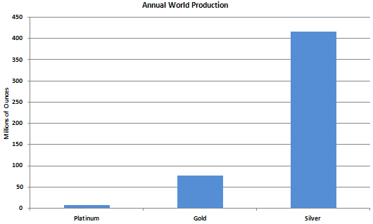of all precious metals. Total annual world production is about