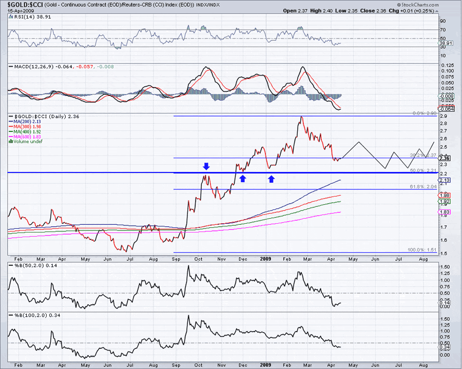 More on Gold Sentiment and its Relative PictureJordan Roy-Byrne While I continue to believe that the next breakout in gold is still months away, we have seen in just a short while, some very encouraging signs on the sentiment front. Accumulating is certainly a wiser prospect now that the luster of the metals has faded yet only superficially. Below is a chart from softwarenorth.net of the Commitment of Traders data on gold. The week gold fell below $880, the net position of commercial traders declined from short 182K contracts to short 153K contracts. Open interest declined from 368K to 344K. It is a positive but doesn't signal a bottom by any means. Traders and investors should key on this data in addition to watching the price of gold as it tests certain support levels such as $850, $820 and perhaps $800. ![]() A sure positive for gold is the COT data for silver. The price of silver has held up very well while the COT data has continued to improve. Usually it takes large declines in price to see a decline in commercial short positions. Below you can see that commercial short positions have steadily declined over the past five weeks while the price of silver has held up very well. Furthermore, both open interest and the net position of the commercials are very close to the levels seen in late 2008 when the market was bottoming. ![]() Usually when the precious metals market is overheated, silver will be overextended the most. In the current situation, silver looks better than gold in terms of sentiment. It shows that speculation in the sector is minimal. Moreover, how much have you heard about silver in the last few months? Usually when gold is roaring, you will hear some mention of silver. Weeks ago gold was near $1,000 and I can't remember any coverage of silver from any of the business channels or major papers. Getting back to gold, some mainstream financial media is quickly forgetting about gold. Take a look at this recent clip from CNBC's Fast Money. http://www.thefinancialtube.com/video/2938/Gartman-Play-Boring-Stocks To be fair to Guy Adami, Joe Terranova and Dennis Gartman, they didn't say they were long-term bearish though they pretty much wrote gold off for the short and medium term. These guys are primarily momentum players so it is a good sign that they are out of the market and their negativity is also a good sign. Aside from charting gold by itself, we should take a look at how it's faring against other markets. Weeks ago I wrote that gold wouldn't go through $1,000 because it was too extended against the various markets, which were in the early stages of a recovery. Let's see how things are shaping up for gold in relative terms. Below is a chart of gold divided by the Continuous Commodity Index, symbol CCI. The ratio has declined 19% from its peak and is finding support at the 38% retracement. At the bottom, I show the %B indicator for 50 days and 100 days. It suggests that the ratio is oversold in the short term but still has some correction to go in terms of 100 days or the medium term. My view is that gold/CCI has completed the first leg down and the market will find a bottom during the second leg down. I don't see a lot more downside in terms of price, as there is significant support at 2.20. ![]() Moving along let's take a look at gold against the S&P 500. The relative situation looks the same for gold when compared to stocks. The chart has completed the first corrective leg, as it is finding support at the 38% retracement. The ratio has declined 22% since reaching its peak. I don't see the ratio going below the 50% retracement at 0.91. Like the other ratio, the correction needs more time to complete but most of the price damage has already been done. ![]() Conclusion From a contrary perspective, sentiment on gold has improved materially, as the metal was unable to hold $880. However, it is still not quite where it needs to be for us to call gold a strong buy. Hence we are looking for another decline through $850 to $820. Also, it is probably too late to do a “short gold long ___” trade. Relatively speaking, most of the “price” correction may be complete, but there is plenty of time to go. In addition to charting gold by itself, traders and investors should key on these ratio charts as they often lead gold higher. ### Jordan Roy-Byrne |
