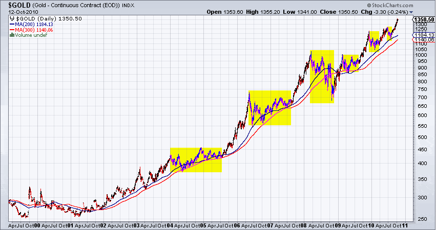 The Contrarian Call on GoldJordan Roy-Byrne, CMT Numerous recent busts (technology, banks, internet, oil, stocks, etc) have given rise to the principle of contrarian investing. Contrarians seek to buy when sentiment is bearish or when a market is completely ignored. They seek to sell when a market is overpriced or overvalued. The problem nowadays is that everyone has bubble fatigue. The herd seems to think that whatever rises is a bubble and will automatically go bust. However, there is much more to contrarian investing than simply going against the herd or prevailing trend. First, the herd is actually right most of the time. As a bull market develops, more and more people come on board. Sentiment will inevitably become more bullish as time goes on. Furthermore, an investor should also consider technicals, fundamentals and value in their contrarian approach. Fake, fraudulent and imposter contrarians (who neglect true contrarian analysis) think gold is a bubble and will soon decline. They see this simply because gold has gone up too far and too fast. Meanwhile, others see gold in a bull market but continue to be worried about a 2008-style setback. As contrarians, we have to evaluate sentiment, technicals and fundamentals. The fundamentals here are certainly obvious. Sentiment, as I stated, is long-term bullish but not hyper-bullish at the present time. Most investors don’t own gold or precious metals shares. This fact, along with the technical picture, lead me to believe gold is getting ready to accelerate into 2011 and this will catch most by surprise. Please see the chart below. (Click on images to enlarge) From 2001 to 2005, gold stayed within channel lines 1 and 2. After bumping up against 2 several times from 2003 to 2005, gold accelerated above 2 in late 2005. Similar action occurred from 2008 to 2010. The market, after several tries, has broken above 3 while 4 is only slight resistance. In addition to the channel line, we note in the lower rows the 20 and 40-week standard deviations. This is how far the market is from those levels. These show that the market is not even close to overbought on a long-term basis. Thus, this means the market has even more room to rise over the next few quarters. Going forward we have strong targets at $1,500, $2,100 and $2,300. What is another way to tell if a market is nearing acceleration? Check the length of recent corrections and consolidations, which is more important than the depth. A market that is gaining strength will experience shorter and shorter and corrections. Notice how the duration of each correction has become smaller and smaller. Gold has yet to surge as it did in late 2005 and late 2007 but has continued to rise steadily since late 2008 while actually gaining strength. We are ten years into this bull market, so naturally we should be seeing more and more people pile on board, creating acceleration and bigger gains. The current technical and sentiment pictures are in position for this to happen over the next 12-18 months. Yet, most aren’t thinking about this. Certainly there can be small corrections along the way and perhaps one last big correction several years down the road before a final blowoff. For the time being traders and investors need to be prepared both mentally and financially for an accelerating market. We see this possibility and are coaching our subscribers as to how to position to take advantage while at the same time managing their risk. If you’d like professional guidance to help you navigate this potentially rewarding bull market, then we invite you to consider a free 14-day trial to our service. ### Jordan Roy-Byrne, CMT |