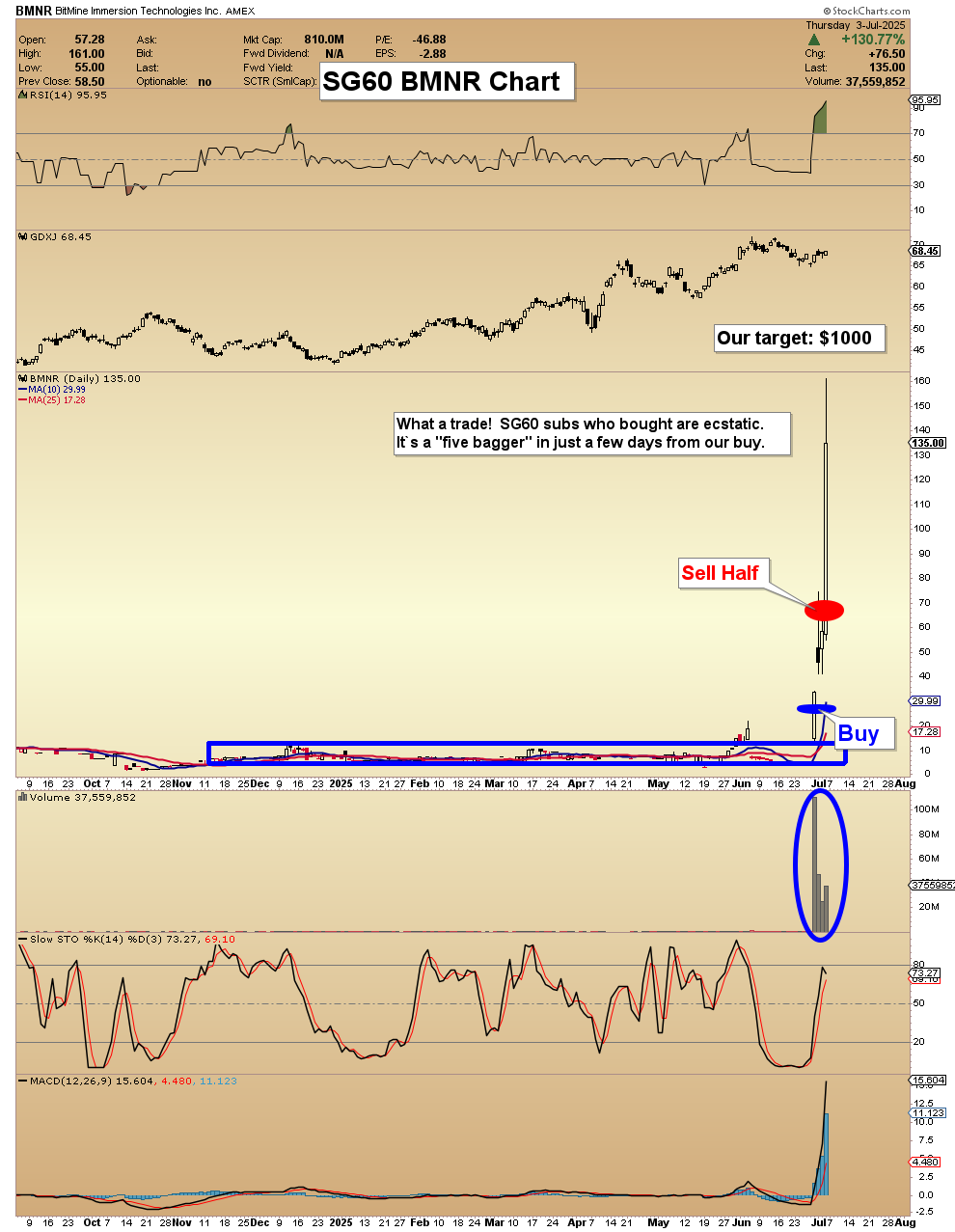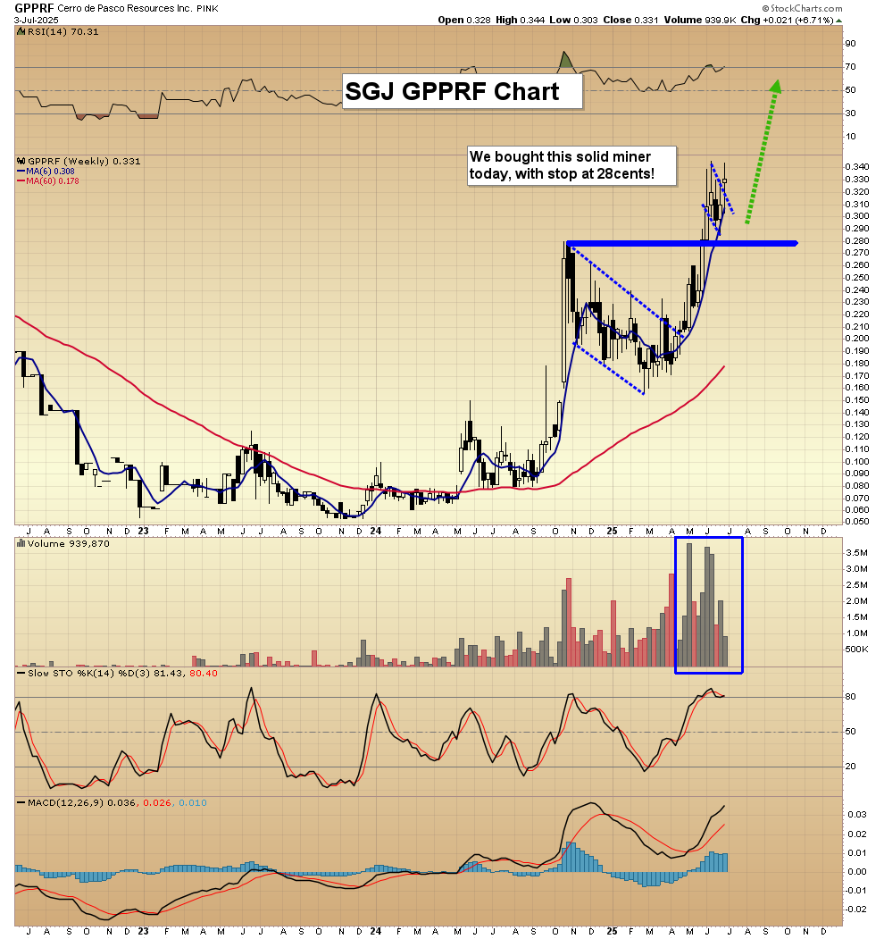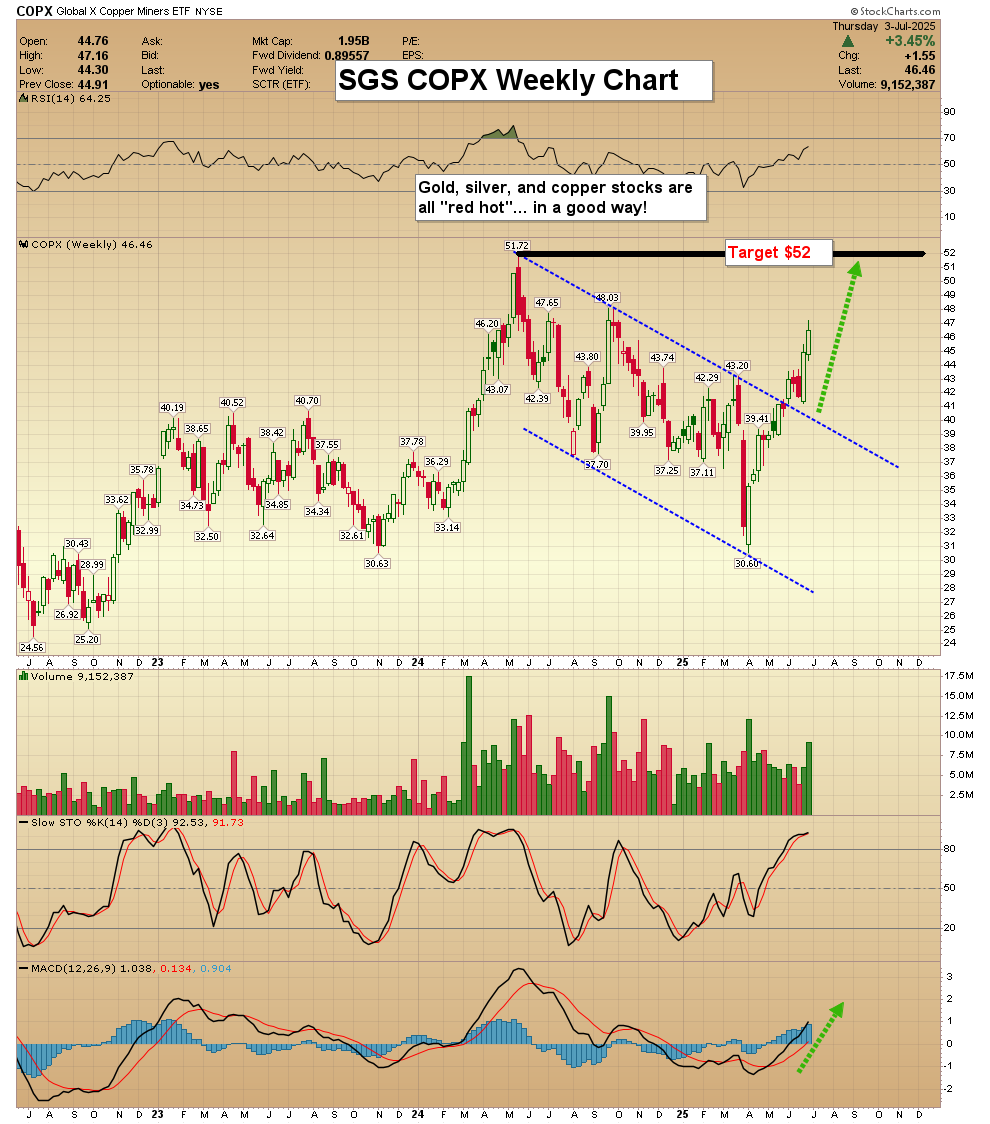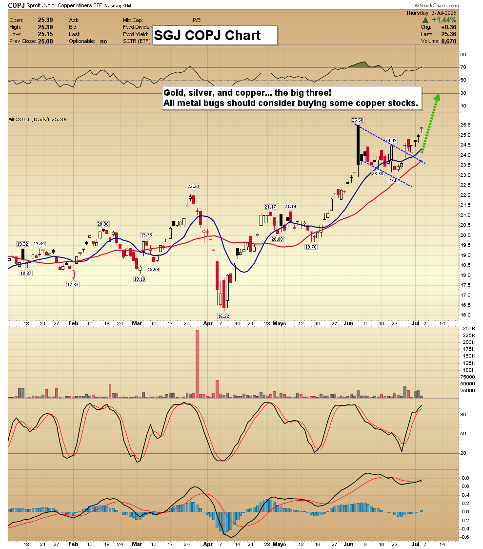 We’re in the “blastoff” zone now for a lot of the junior gold, silver, and copper miners. To play the action, my SGJ newsletter at only $249/year could be ideal. I’m doing a special offer of just $199 for 14 months, good through this weekend. Send me an email or click here or if you want the offer, and I’ll do it. Thank-you!