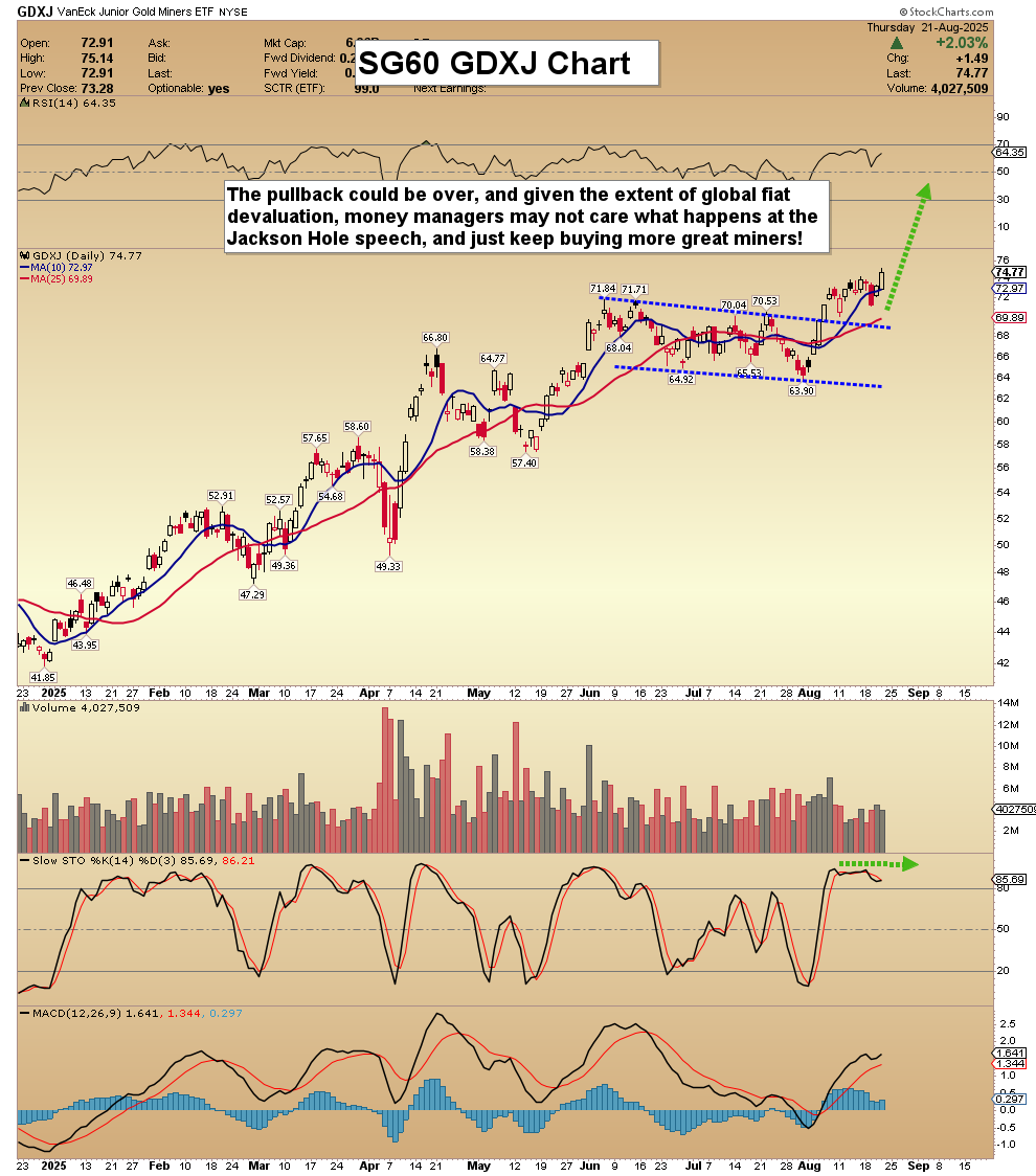We’re in the blast-off zone now for a lot of the junior miners and to play the action my SGJ newsletter at only $249/year could be ideal. I’m doing a special offer of just $199 for 14 months, good through this weekend. Send me an email or click here or if you want the offer, and we’ll do it. Thank-you!