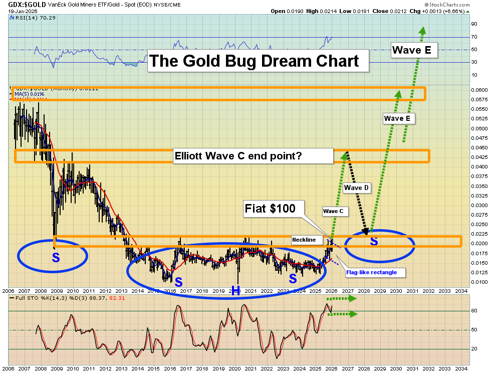 - Please click here now. Double-click to enlarge. Another key chart that I urge investors to look at every day is this GDX versus gold chart. Note the key 14,3,3 series Stochastics oscillator at the bottom of the chart. As the fantastic upside breakout unfolds and the rally begins, I expect that oscillator could stay overbought for not just years… but for decades. The bottom line is this:
