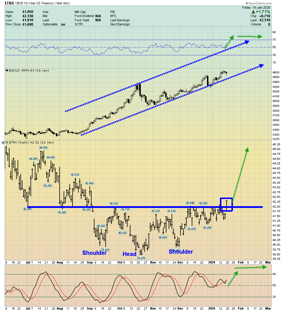 - On that note, please click here now. Double-click to enlarge this ten-year interest rates chart. The upside breakout carries enormous implications for the US government… and for gold. For decades, I’ve warned that QE to infinity is a fantasy. I predicted it will be replaced with higher rates to infinity, and higher US fiat prices to infinity for gold. I’m more adamant about that prediction now than ever. Loss of confidence in governments and their fiat is in play… and it’s here to stay!