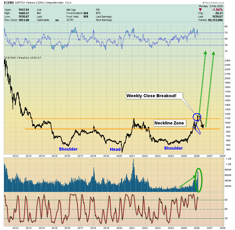 - The initial surge looks false, but it’s real. That’s because the breakout is more of a process than a short-term event. Note the enormous volume coming into the CDNX stocks.