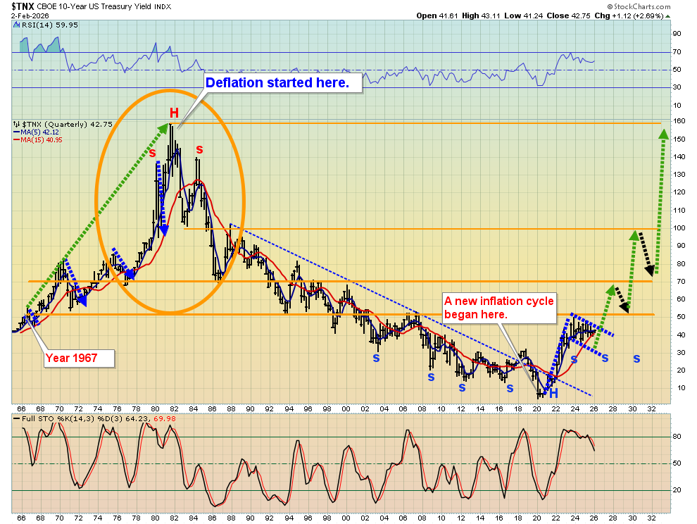 - Please click here now. Double-click to enlarge. A 40year inflation cycle began in 2020 and it likely won’t end until US rates are at all-time highs. Unlike the resolution of the cycle in 1980, this time those high rates won’t work to halt the inflation the governments are creating.