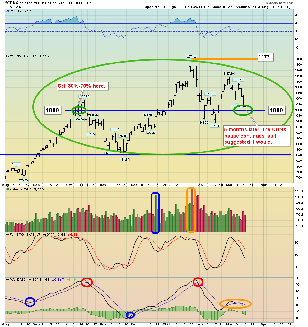- Miners? Please click here now. Double-click to enlarge. The CDNX has gone nowhere since I issued my profit booking alert five months ago at round number resistance of 1000.