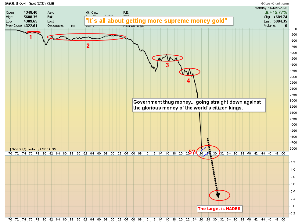 - Clearly, all citizens need to accumulate gold, now, and for the rest of their lives. To view some great zones to do that, please click here now. Double-click to enlarge. $5000 (now), $4850, and $4650 are three great zones to eagerly grab more gold, silver, and miners.
