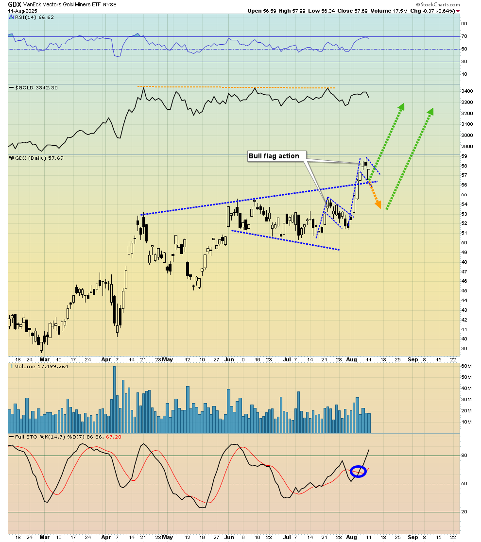- Please click here now. Double-click to enlarge. The outstanding mining stock action isn’t limited to the junior sector; GDX may be forming another bull flag. It roared back from yesterday’s morning lows and did that while gold closed the day down hard.