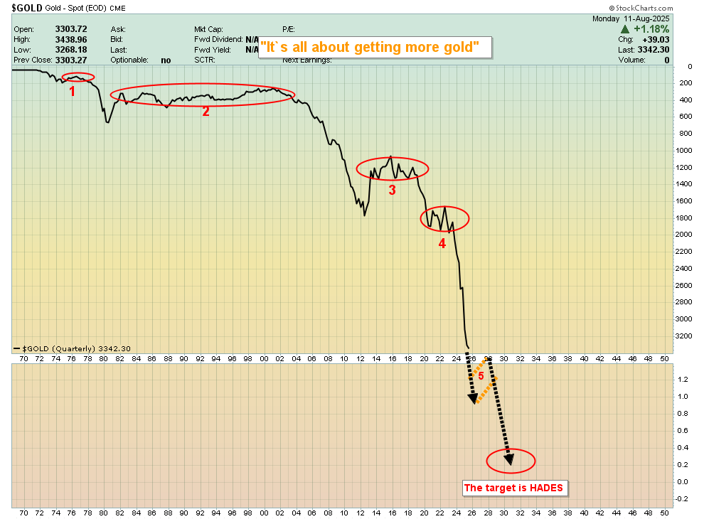 - As it relates to empire leadership, the US debt-swamped population is simply far too small for that leadership to do anything but fade. Over the coming decades, it will be replaced by the huge gold-oriented populations of China and India.