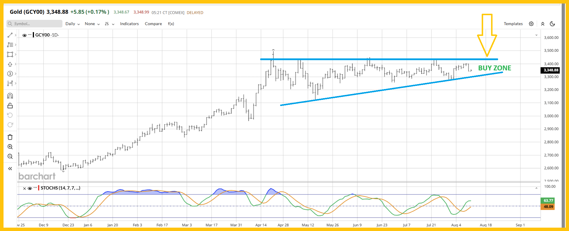 - For a look at the next big buy zone for gold, please click here now. Double-click to enlarge. Professional investors think ahead… far ahead. Currently, the most important nearby buy zone for gold is the $3500-$3300 zone, on a dip into it from $3700-$4000.