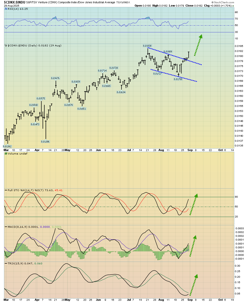 - Gold, silver, and miners are the obvious go-to play for savvy investors in this inflation cycle, bull era, and government/central bank failure situation, and for an exciting look at the miners, please click here now. Double-click to enlarge. The CDNX is breaking out (again) against the Dow. It looks unstoppable and given the ludicrous central bank and government “odes to inflation”, investors need to think about vastly bigger numbers, for both time and price.