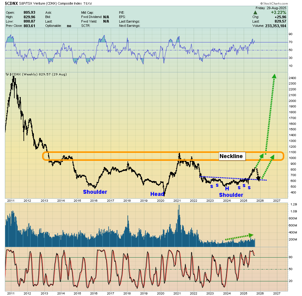 - On that note, please click here now. Double-click to enlarge what I’ve dubbed as one of the three most fabulous charts in the history of markets. Note the subtle rise in volume at the bottom of the chart. That’s occurring on the magnificent rally to the massive inverse H&S pattern neckline, and I expect there to be a stupendous blast of volume on the breakout.