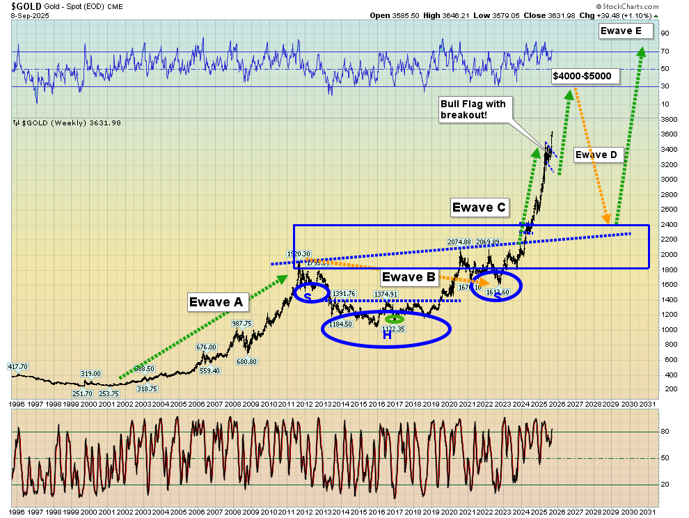- The next massive five wave surge for gold (basis Elliott analysis) likely begins in the same year the current one ends (2029) and there’s more good news: It’s likely to feature Western money managers treating gold with the kind of respect it currently gets from their savvy Asian counterparts.