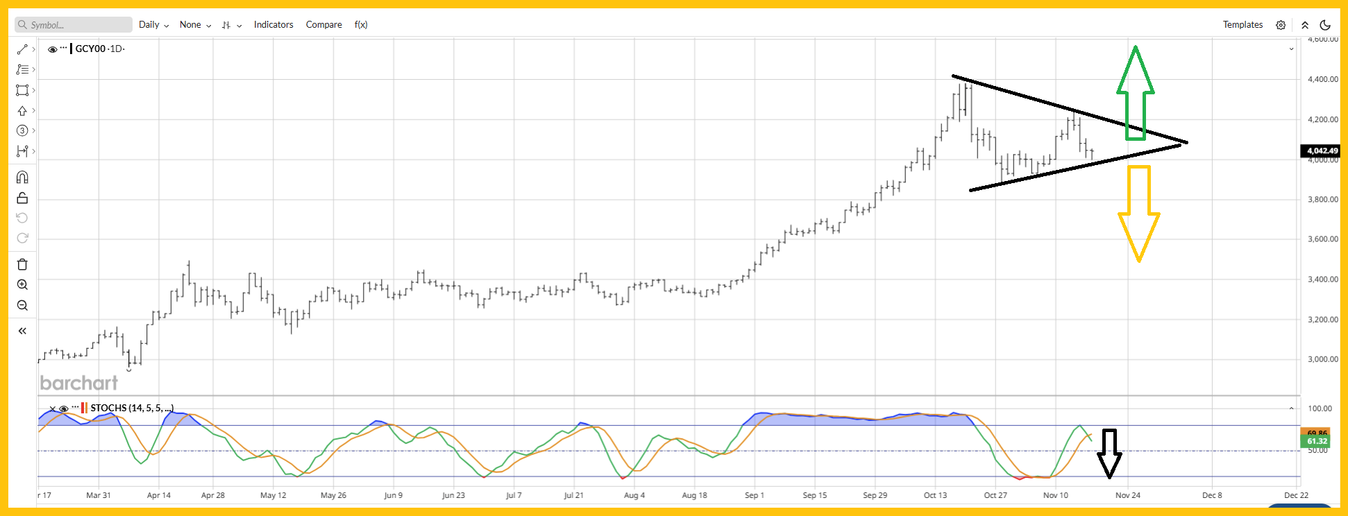 - What about the technical action? Please click here now. Double-click to enlarge this daily chart. There’s a significant triangle pattern in play.