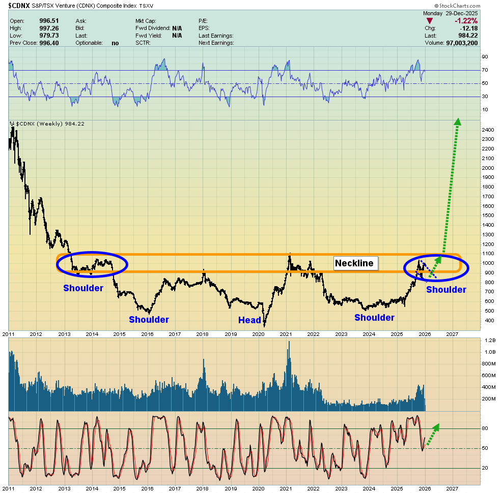 - Please click here now. Double-click to enlarge this long-term chart. Additional symmetry has been added to the chart with a new right shoulder. The massive inverse H&S pattern suggests decades of upside action lie ahead for all mining stock enthusiasts.