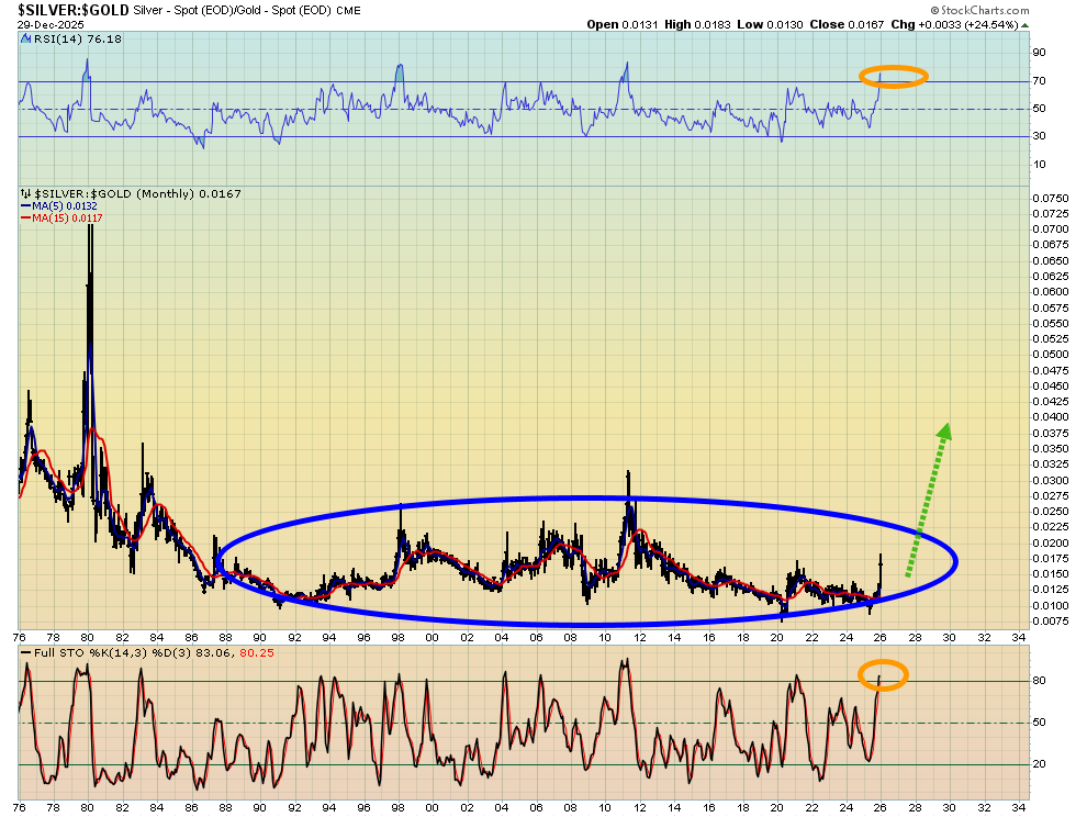 - For a look at the long-term chart, please click here now. Double-click to enlarge. Against failed fiat, there might be parabolic action, but that should be largely irrelevant to any serious silver bug. Against gold, silver is in a huge base pattern that projects years (and perhaps decades) of great bullish action to come. Dips need to be bought.